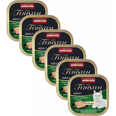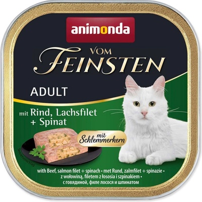 Vom Feinsten CORE hovězí, losos filet + špenát pro kočky 100g Kompletní krmivo pro dospělé kočky Animonda Vom Feinsten je novinka roku 2023 mezi kočičími paštikami. Vysoce...