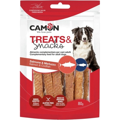 Camon Pamlsky Losos Filet 11 cm 80 g - Doplňkové krmivo pro psy s lososem. - Díky speciálnímu balení, které absorbuje kyslík, vydrží déle čerstvé! SLOŽENÍ: Ryba 88%(z toho 84%...