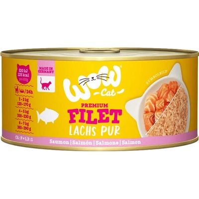 Čerstvé filety z lososa šetrně uvařené ve vlastní šťávě. 100% losos pro nejnáročnější kočičí milovníky jedinečné chuti lososa. Kompletní krmivo pro dospělé kočky. WOW Cat...