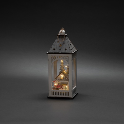 LED lucerna, 8 teplých bílých LED diod, domečekDesign: domeček, Otec Vánoc, XMASMateriál: dřevoBarva: bílá/šedá8 teplých bílých LED diodse stříbrným drátěným mini světelným...