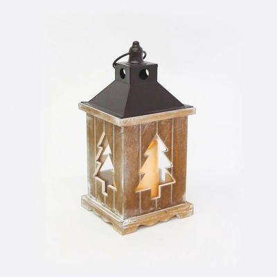 ACA Lighting plastová lucerna se stromečky 10 LED na baterie 3xAAA teplá bílá IP20 14x14x30cm XLANBWW303A