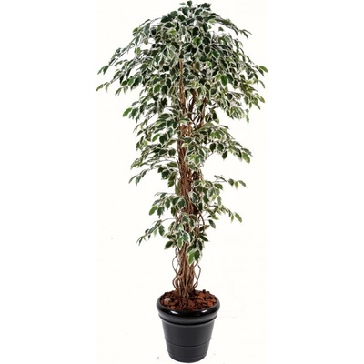 Umělý fíkus vysoký 210cm vč. květináče. Velké umělé listy mají zeleno-krémovou barvu a propracovanou přírodní strukturu. Kmen obrostlý liánami je vyrobený z přírodního dřeva....