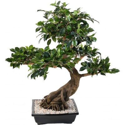Luxusní umělý BONSAI FICUS má celkovou výšku rostliny včetně dekorativního květináče 78cm. Šířka koruny je cca 77cm. Hmotnost 12,68kg. Kmen vyroben z FIBERGLASS/RESIN, listy z...