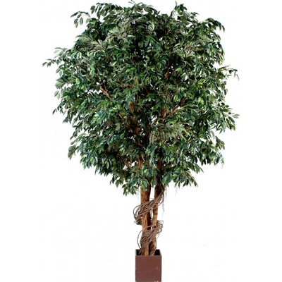 Větší fíkusový strom s hustou korunou osázenou 8448 zelenými listy. Kmen umělého fíkusu je vyroben ze dřeva. Umělý strom Ficus Giant se dodává zakotvený do dřevěného květináče s...