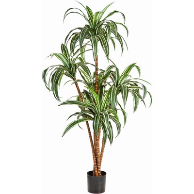 Luxusní umělá palma DRACAENA STROM X 5 má celkovou výšku rostliny včetně kotvícího květináče 120cm. Počet listů 110ks. Hmotnost 3,635kg. Další rozměry včetně šířky koruny...