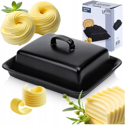 Elegantní černá keramická máslenka s dřevěným knobem pro praktické uchovávání a servírování másla. Kompaktní rozměry 16 × 12,5 × 7 cm, klasický tvar vhodný do každé kuchyně, víčko pro zachování čerstvosti a snadné čištění. Víčko pro čerstvost a ochranu Přiléhající...