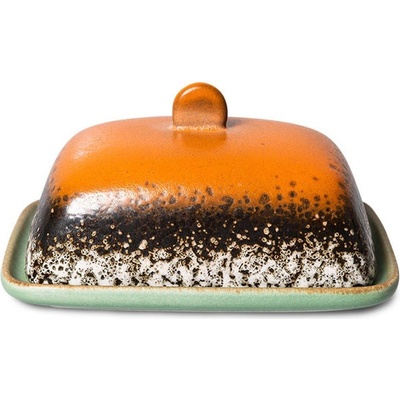 HKLIVING Keramická máslenka 70s Meteor Oranžovo hnědá 15,5 x 12 x 7,5 cm