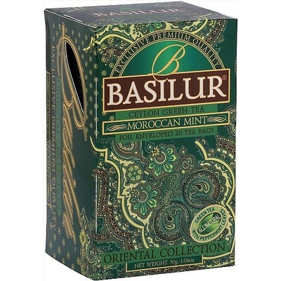 Čaj Dilmah Moroccan Mint 20x1,5g Zelený čaj s lístky marocké máty. Kombinace jemného zeleného čaje s lístky máty. Má výrazné osviežujúcea povzbuzující účinky. Nedoporučuje se...