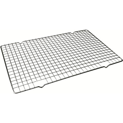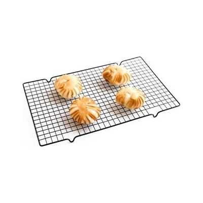 NEREZOVÁ MŘÍŽKA NA CHLADNUTÍ Tato mřížka je ideální na chladnutí pečiva,ale i na sušení hub či ovoce.Na ocelovém materiálu na nožičkách chladnou pochutiny velice snadno a rychle. Rozměry:30x45cm