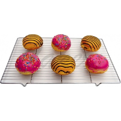 Tato mřížka je ideální na chladnutí pečiva, ale i na sušení hub či ovoce. Na ocelovém materiálu na nožičkách chladnou pochutiny velice snadno a rychle. Rozměry : 30 x 45 cm