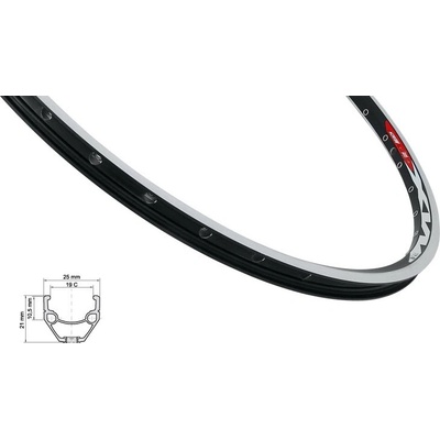 Rozměr: 507x19 (24") Počet děr: 36 Ventil: AV Pro V-Brake (možno použít i pro kotoučové brzdy) Černý/stříbrný bok Dvoustěnný Materiál: 6060.T6
