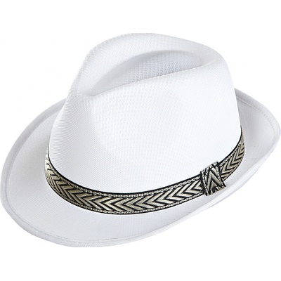 Bílý mafiánský klobouk s černým proužkem pro dospělé. Ideální karnevalový klobouk ke kostýmu gangstera nebo mafiána. Bílý mafiánský klobouk můžete zakoupit u nás na internetovém e-shopu nebo v kamenné prodejně na Tylově nábřeží, Hradec Králové.