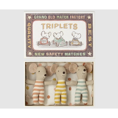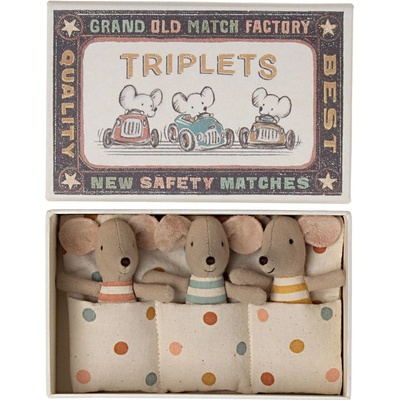 Maileg Myší trojčátka v krabičce od sirek Triplets 3 ks, multi barva, papír, textil. Když je čas jít spát, každý se rád zavrtá do teplé peřiny. Ale věděli jste, že myšky Maileg...