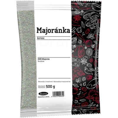 ZÁKONNÝ NÁZEV POTRAVINY majoránka - koření SLOŽENÍ majoránka ALERGENY Neuvádí se, MŮŽE OBSAHOVAT: Sezamová semena a výrobky z nich,Obiloviny obsahující lepek,Vejce a...
