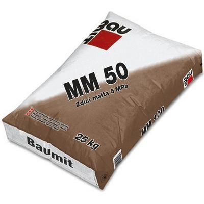 Zdicí malta vápenocementová zrnitost 4 mm MM 50 Baumit 25 kg Vápenocementová zdicí malta pro běžné zdění. Třída pevnosti M 5 Baumit 25 kg. Průmyslově vyráběná suchá maltová...