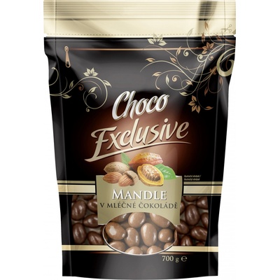 Choco Exclusive Mandle v mléčné čokoládě. Výrobek je z kvalitní čokolády a těch největších pražených mandlí. Balení obsahuje 700 g. Složení Mléčná čokoláda 79 % (cukr,...