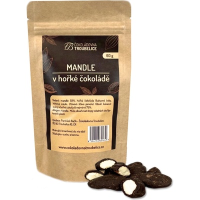 Zařazení: Dražované skořápkové plody Země původu: Slovensko Složení: hořká čokoláda 79% (cukr, kakaová hmota, kakaové máslo, SOJOVÝ lecitin, přírodní vanilkové aroma), MANDLE...