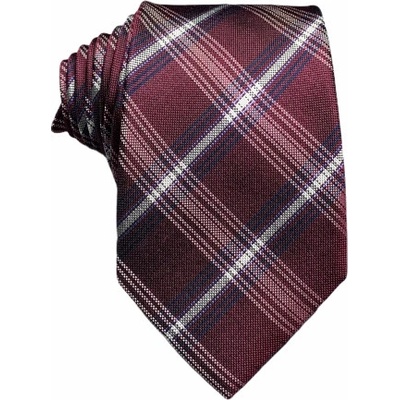 Nová pánská kravata se vzorem protínajících se pruhů Design: Check Barva: Vínová - bílá - modrá Délka kravaty: 150 cm Šířka kravaty: max. 7 cm Materiál: Hedvábí Popis: Nová...