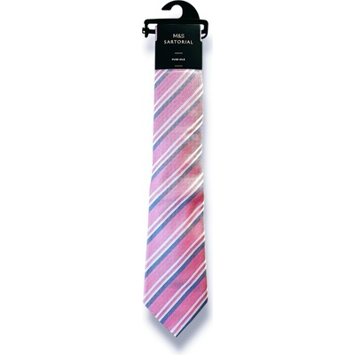 Nová pánská kravata se vzorem pruhů Design: Sartorial stripeBarva: Růžová - stříbrná - modrá Délka kravaty: 150 cm Šířka kravaty: max. 8 cm Materiál: Hedvábí Popis: Nová luxusní pruhovaná kravata od značky Marks Spencer Luxury vyrobená z hedvábí. Buďte okouzlující vždy...