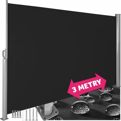 Venkovní postranní markýza na zastínění terasy 180 x 300 cm | tmavě šedá Boční zástěna zajistí Vám i Vašim hostům nerušené soukromí při posezení na balkóně, terase či zahradě....
