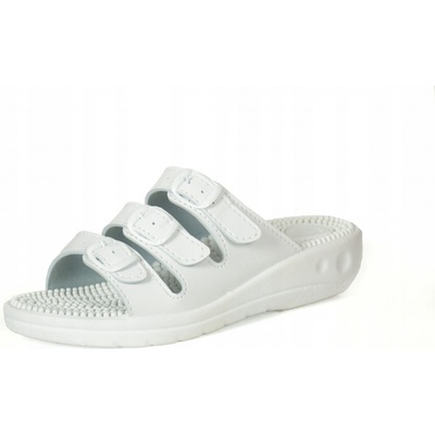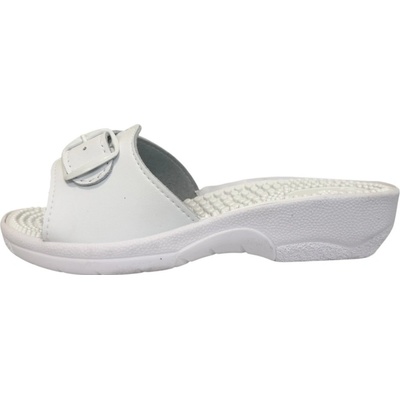 Dámský bílý pantofel, s reflexní stélkou ( prokrvením chodidel), nastavitelná šířka na jednu přezku. Pracovní obuv. SI/03C1pantofel profi Velikost: 36,37,38,39,40,41,42 Barva: bílá