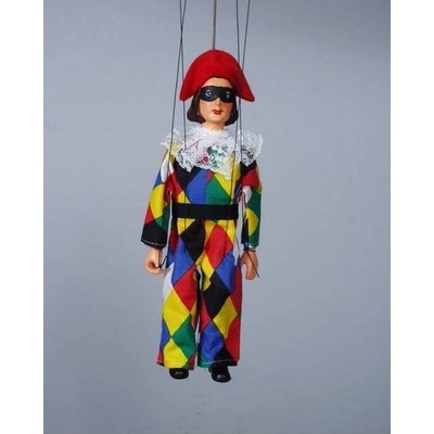loutka i pro hraní v loutkovém divadle Klasická, tradiční loutka - Harlekýn, je svým reálným, perfektně řemeslně zpracovaným oblečením a pečlivě namalovaným obličejem opravdu...