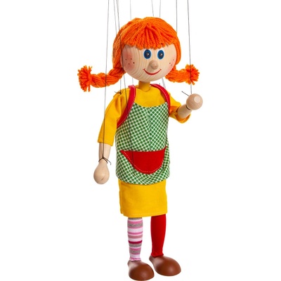 Jsem loutka vyrobená z voňavého dřeva. Ovládám se snadno. Shora pomocí vahadla se čtyřmi provázky. Zvládnou to všechny holčičky i kluci zhruba od tří let. Velikost samotné...