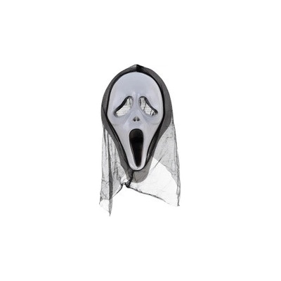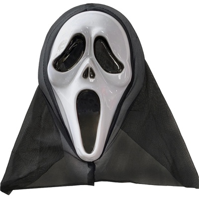 Plastová maska - Vřískot s černou kápí. Vhodná na halloweenskou nebo podobnou strašidelnou párty.