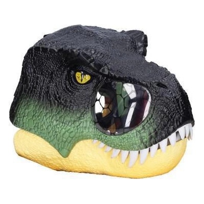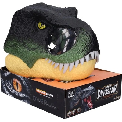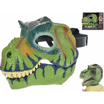 Maska na hlavu dinosaurus s efekty. Rozměry 28x22x21,5 cm. Pohybem hlavy se otevírá čelist, svítí oči a aktivuje se dinosauří řev. Světelné a zvukové efekty. 3xLR44 baterie...