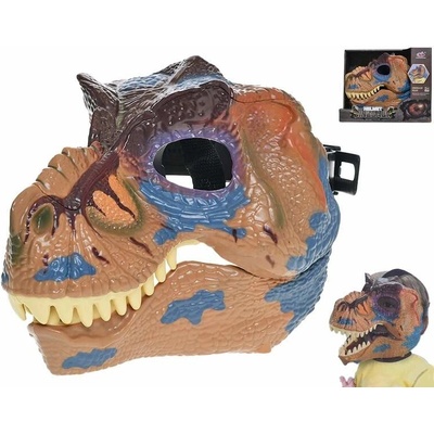 Maska na hlavu dinosaurus s efekty. Velikost 28x22x18cm. Maska se nasazuje na hlavu. Pohybem hlavy se otevírá čelist, a aktivuje se dinosauří řev. Zvukové efekty. 3 polohy...