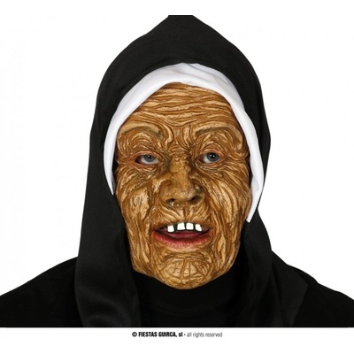 Navlékací latexová maska na hlavu děsivá řádová sestra včetně černého textilního čepce (kapuce), velikost masky 12 x 21 cm.