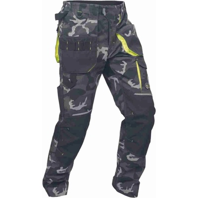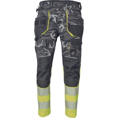 Pánské pracovní HI-VIS kalhoty s pružným pasem a multifunkčními kapsami; v moderní úpravě šedé kamuflážové barvy; Oxford 600D zesílení kolenních kapes pro vkládání ochranných...