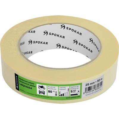 SPOKAR Maskovací páska interiérová je tenký mírně krepový papír s mírnou lepivostí, který slouží k vytváření velmi přesných okrajů při malování. Je ideální pro vnitřní použití...