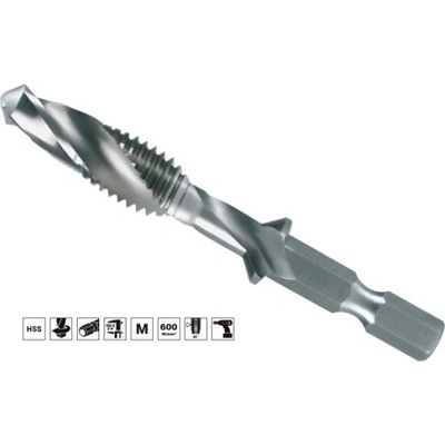 Kombinovaný strojní závitník je vhodný pro vyřezávání závitů do plechu akumulátorovými vrtačkami. Závit je vyříznut v jedné operaci bez výměny nástroje. Nástroj obsahuje...