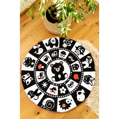 Tato extra velká měkká hrací deka poskytne vašemu dítěti dostatek prostoru i pohodlí pro hraní na zemi. Vysoce kontrastní obrázky i bezpečné zrcátko stimulují zrak dítěte, různorodé textury lákají ke zkoumání a podporují tak rozvoj hmatu dítěte. Usměvavé obrázky...