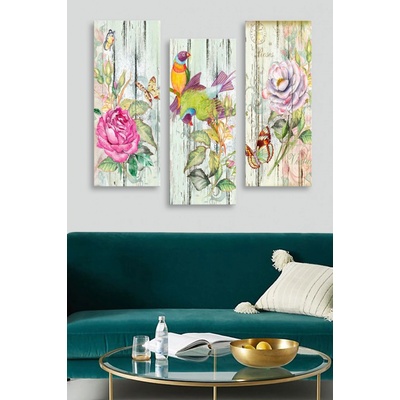 ASIR Obraz na MDF 3ks RŮŽE A PTÁCI 20 x 50 cm