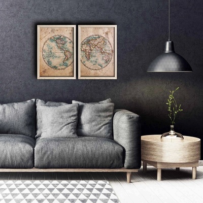 ASIR Obraz na MDF s rámem 2ks STARÁ MAPA SVĚTA 38 x 53 cm