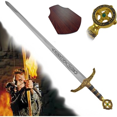 Honosný středověký meč "LOCKSLEY" s plaketou Krásná a luxusně zpracovaná výstavní replika pozdně gotického rytířského meče. Nádherný detailně zpracovaný šlechtický meč z...