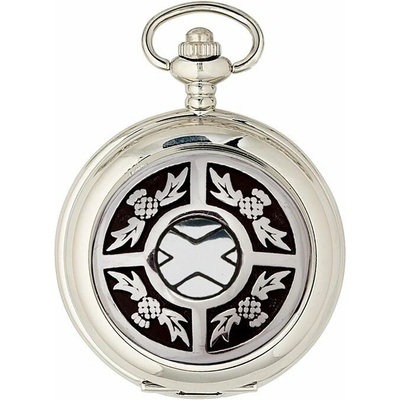 Natahovací kapesní hodinky s keltským motivem s bodláky a skotskou vlajkou, dodávané s řetízkem. Otvírá se kryt ciferníku a také zadní část, kde je průhled na strojek. Strojek...
