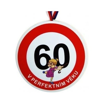 Medaile o průměru cca 12,5 cm je vyrobena z překližky. Medaile obsahuje stuhu v barvách trikolory pro zavěšení na krk nebo vystavení na zeď. Na obrázku je rozjařená žena s číslem 60 a nápisem: "V perfektním věku." Na oslavě medailí krásně označíte oslavence.