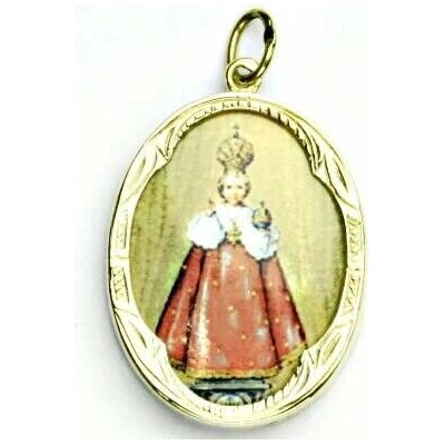 Gravírovaný medailon Panna Marie Svatohostýnská, na půlměsíci stojící, s malým Ježíškem v náručí. Dle pověsti, poprvé zaznamenané Bohuslavem Balbínem, na půl milionu Tatarů...