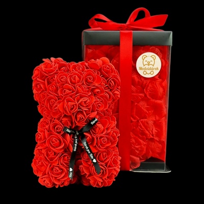 Obdarujte Vaši něžnou polovičku medvídkem z růží v dárkovém balení. Je vhodným dárkem na Valentýna, výročí, narozeniny či jako svatební dekorace. Medvídka posíláme v úhledně...