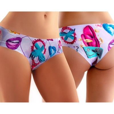 Úžasné kalhotky značky Meméme si zamilujete! Krásné barevné kalhotky vzor Love mural jsou nižšího střihu a celé potištěné obrázky. Kalhotky jsou nízké, bokového střihu. V pase...