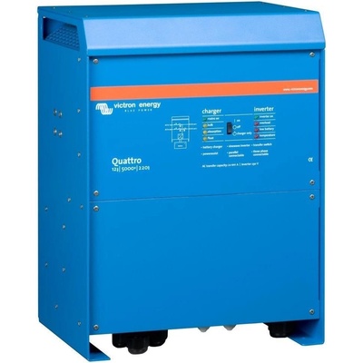 Victron Quattro 12 V (5000 VA) Quattro je sofistikovaná AC-DC nabíječka akumulátorů a DC-AC střídač (invertor) s dvěma AC vstupy, čistě sinusovým výstupním napětím a ultra...