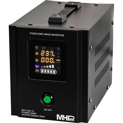 Měnič napětí MHPower MPU-300-12, UPS, 300W, čistý sinus, 12V Funkce: Při napájení ze sítě jsou napájeny připojené spotřebiče přímo ze sítě, externí akumulátor je dobíjen, při...