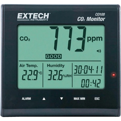 Extech CO100 měřič kvality ovzduší, indikátor oxidu uhličitého, teplota, vlhkost, 0-9999 ppm CO2 ... malý, kompaktní a snadno použitelní měřič koncentrace CO2, teploty a...
