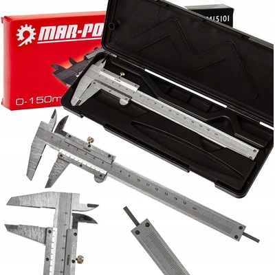 Měřítko posuvné kovové, 0-150mm MAR-POL M15101 Technické parametry: Rozsah měření: 150 mm / 6 '' 150 mm - čtení 0,02 mm, 6'' Funkce: vnější rozměr, vnitřní rozměr, hloubka...