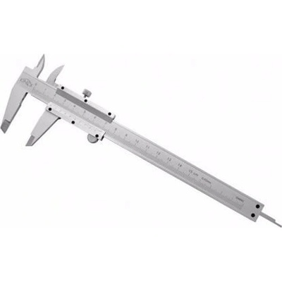 Materiál: uhlíková ocel; rozsah měření: 0-150 mm; přesnost: ±0,02 mm/m; měrné jednotky: mm/inch; nonius - přídavné dělení.