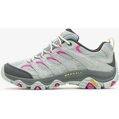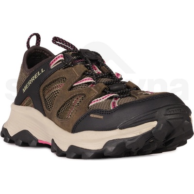 Lehká dámská prodyšná obuv nízkého profilu a bez membrány. Svršek z vepřovice a materiálu Mesh, podešev Vibram TC5+, Merrell Air Cushion tlumení v patní části, Kinetic Fit...