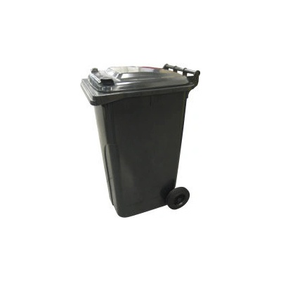 Vyrobeno z plastu – Polyetylen s vysokou hustotou (HDPE). Odklopné víko je opatřeno menším víkem – víko ve víku. Standardně dodáváno se dvěma bržděnými kolečky – průměr 200 mm....